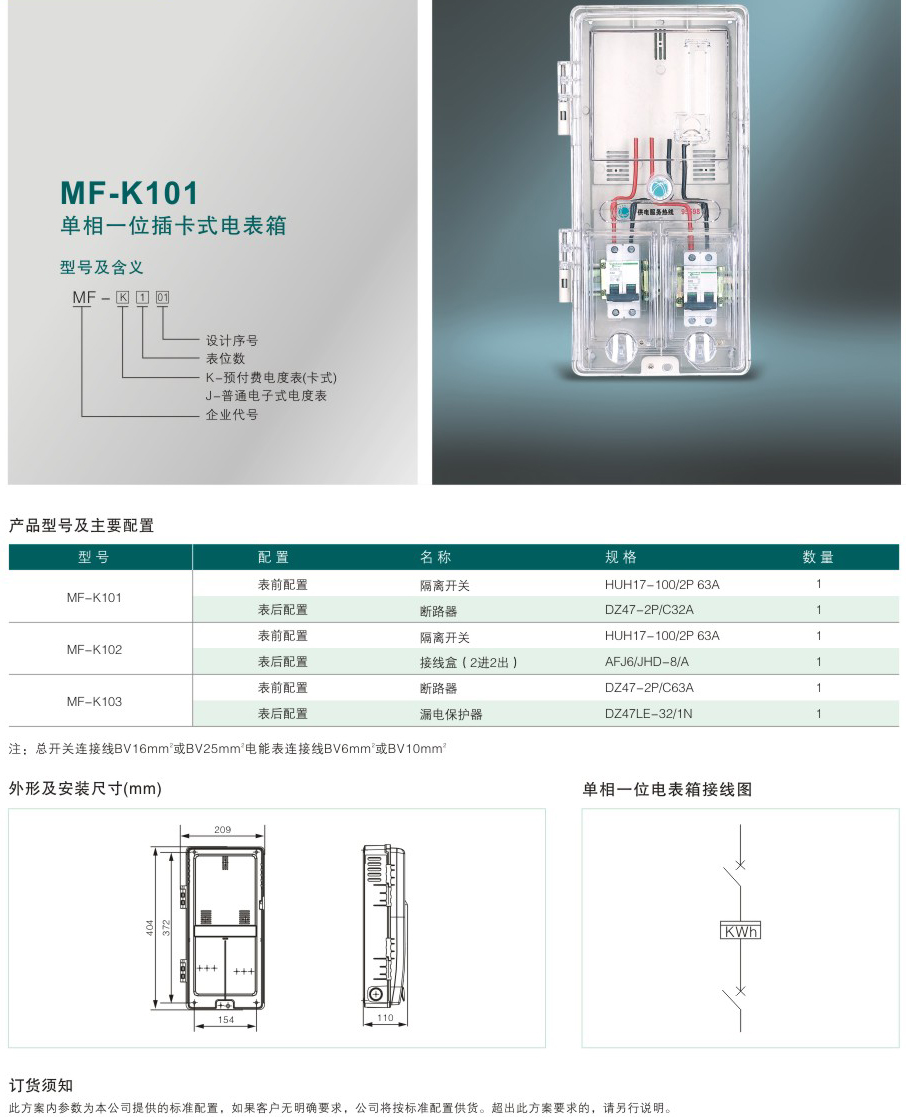 MF-K101 單相一位插卡式電表箱