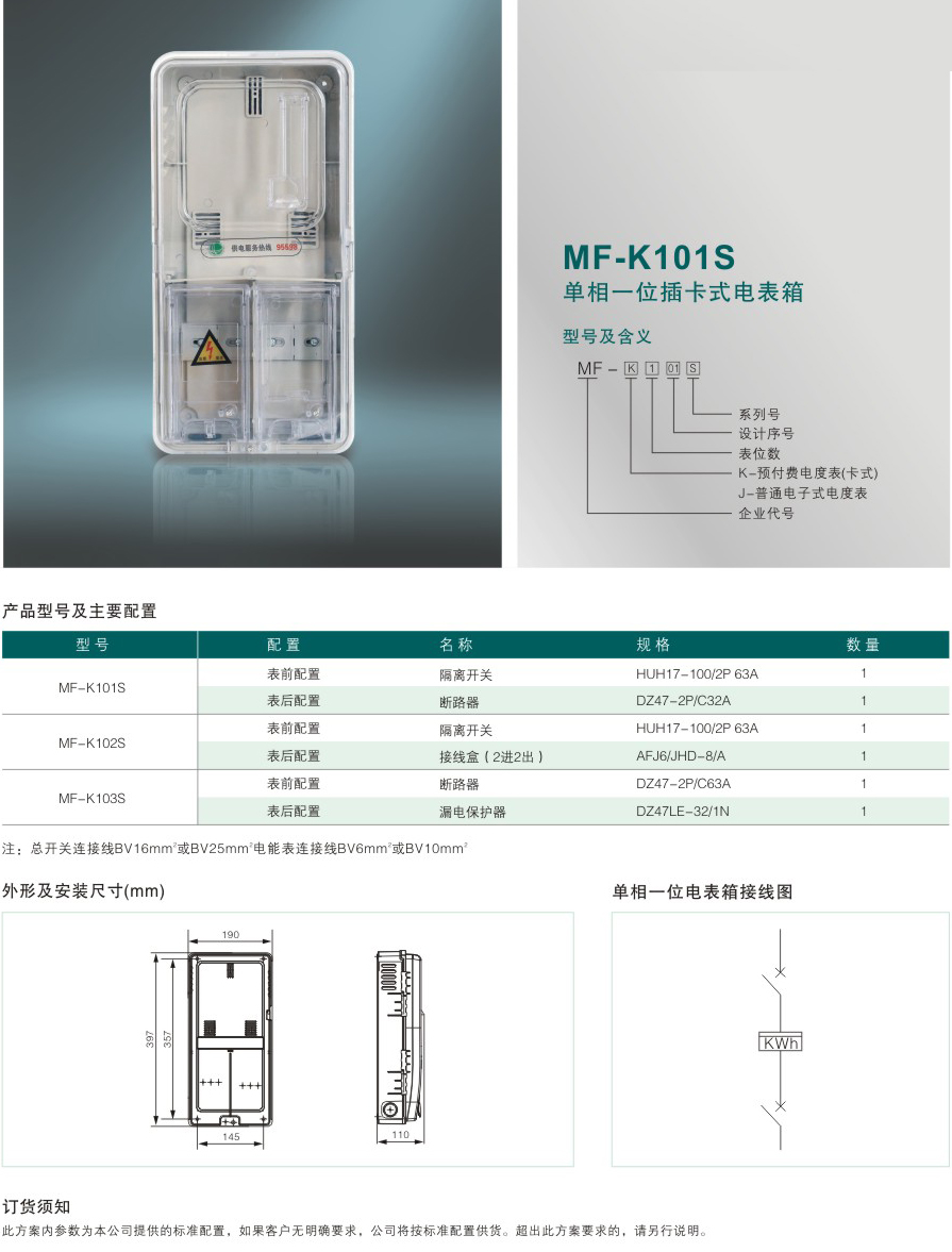 MF-K101Hb 單相一位插卡式電表箱