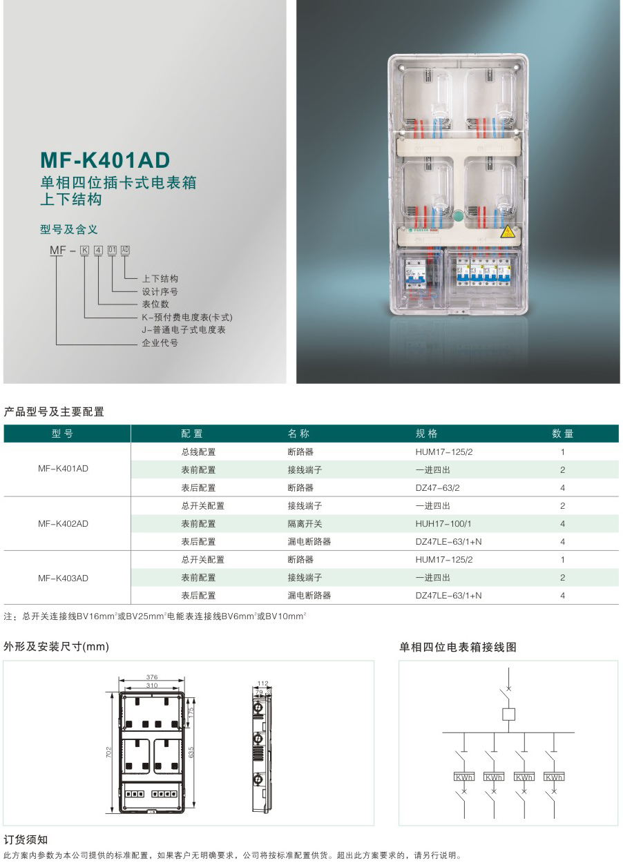 MF-K401AD 單相四位插卡式電表箱上下結構