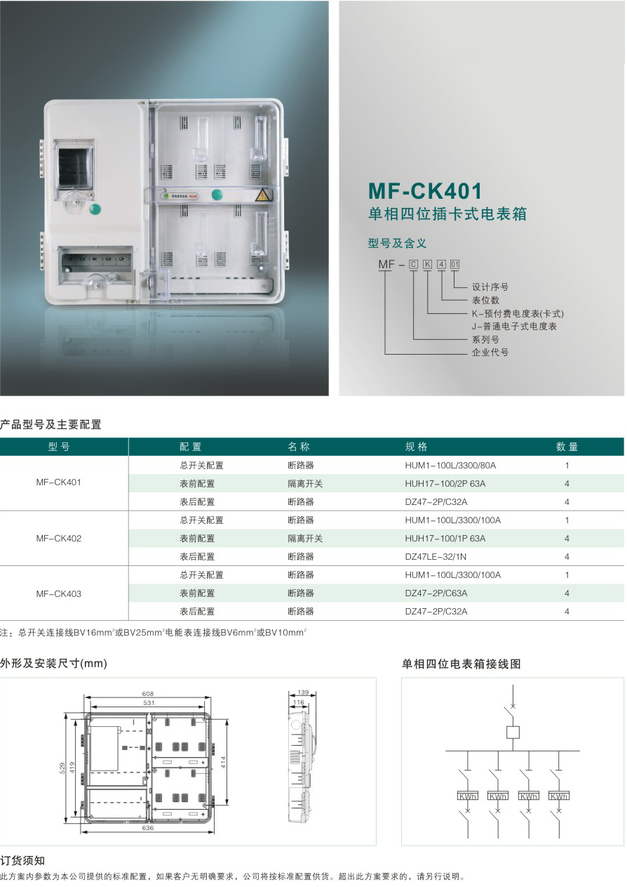 MF-CK401 單相四位插卡式電表箱