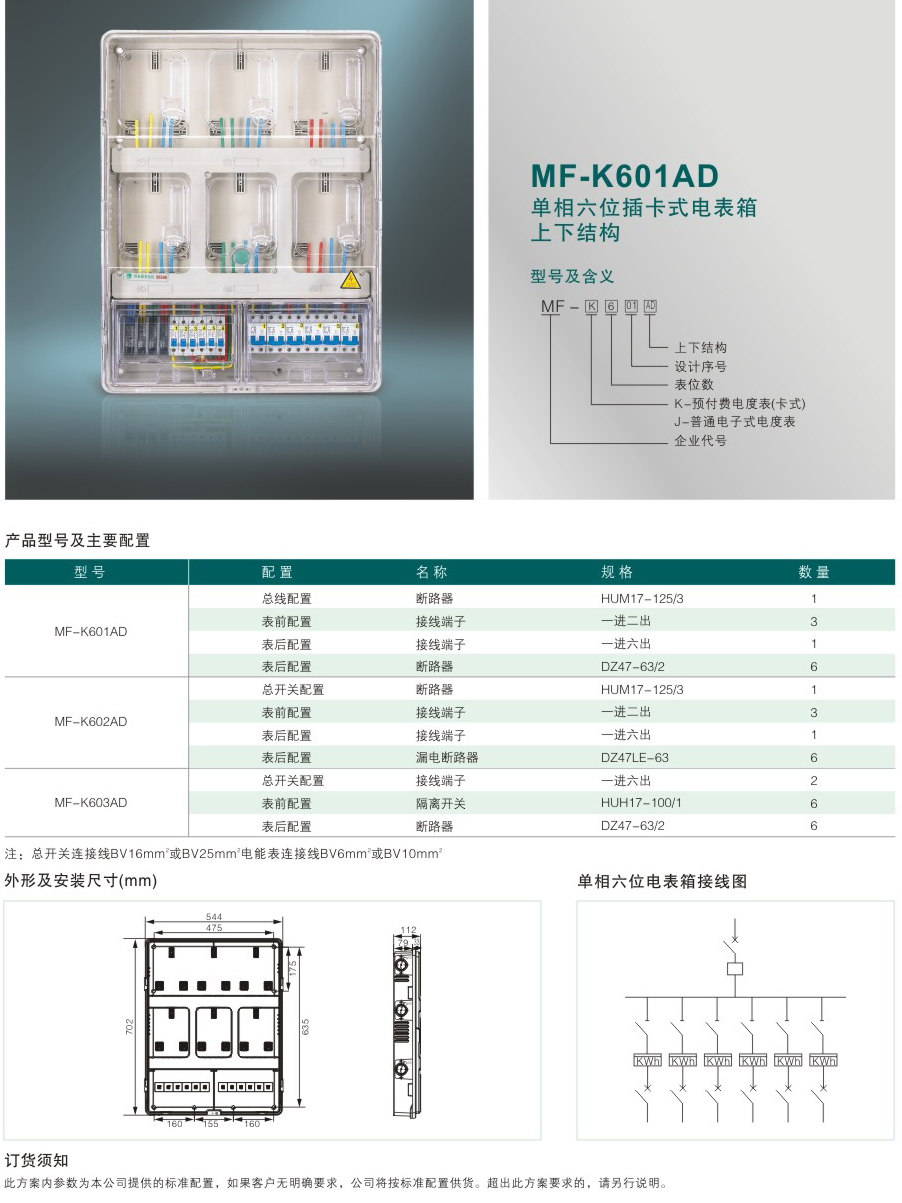 MF-K601AD 單相六位插卡式電表箱上下結(jié)構(gòu)