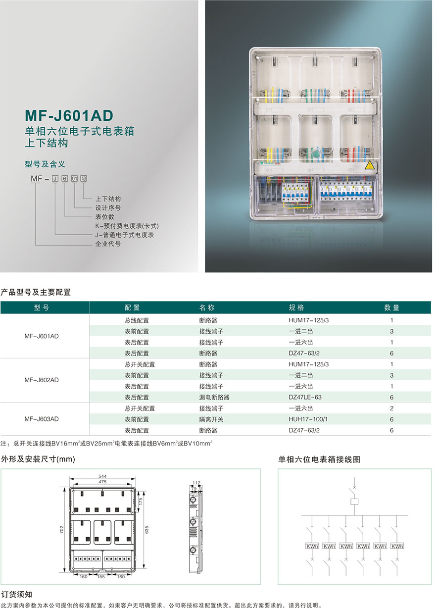 MF-K601AD 單相六位插卡式電表箱上下結構