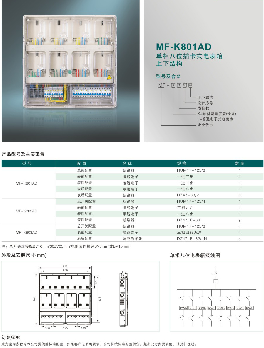 MF-K801AD 單相八位插卡式電表箱上下結構